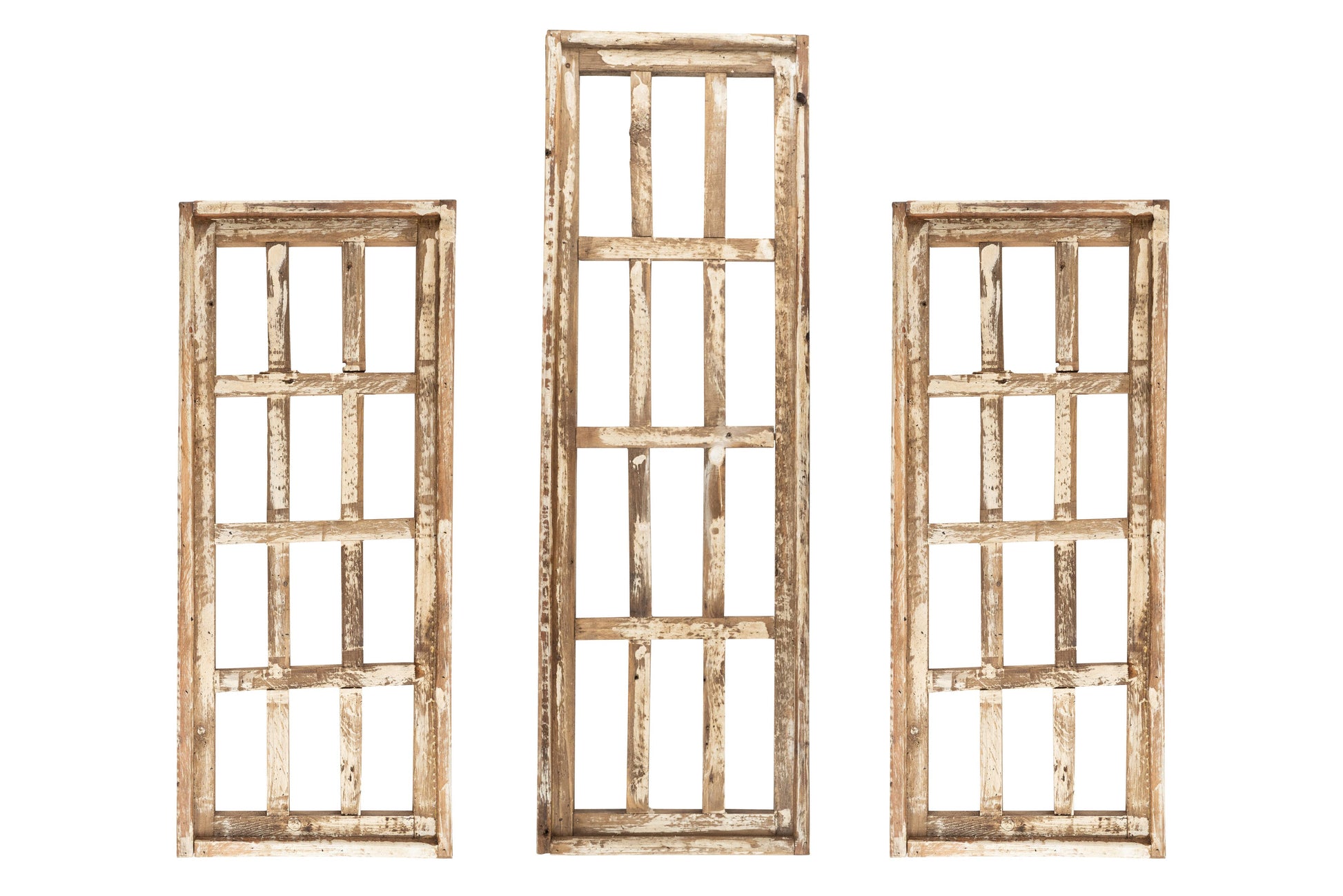 Simple rustic farmhouse elegance and artful construction are what you will get with our Shabby Hill farmhouse architectural windows. You are buying a set of 3 wall windows.